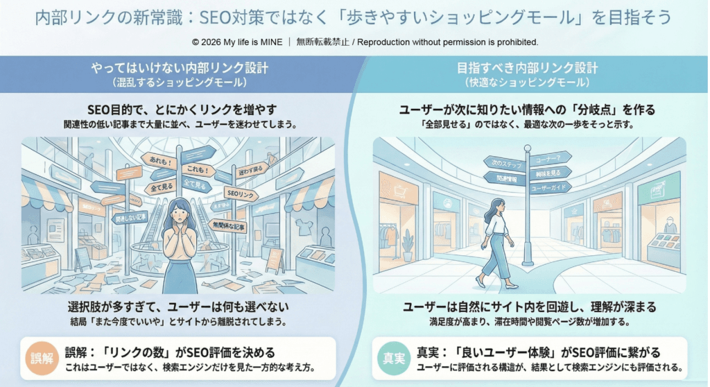 内部リンクとは、検索エンジンのための装置ではなく、読者が気持ちよく歩き、自然に次へ進めるための設計です。